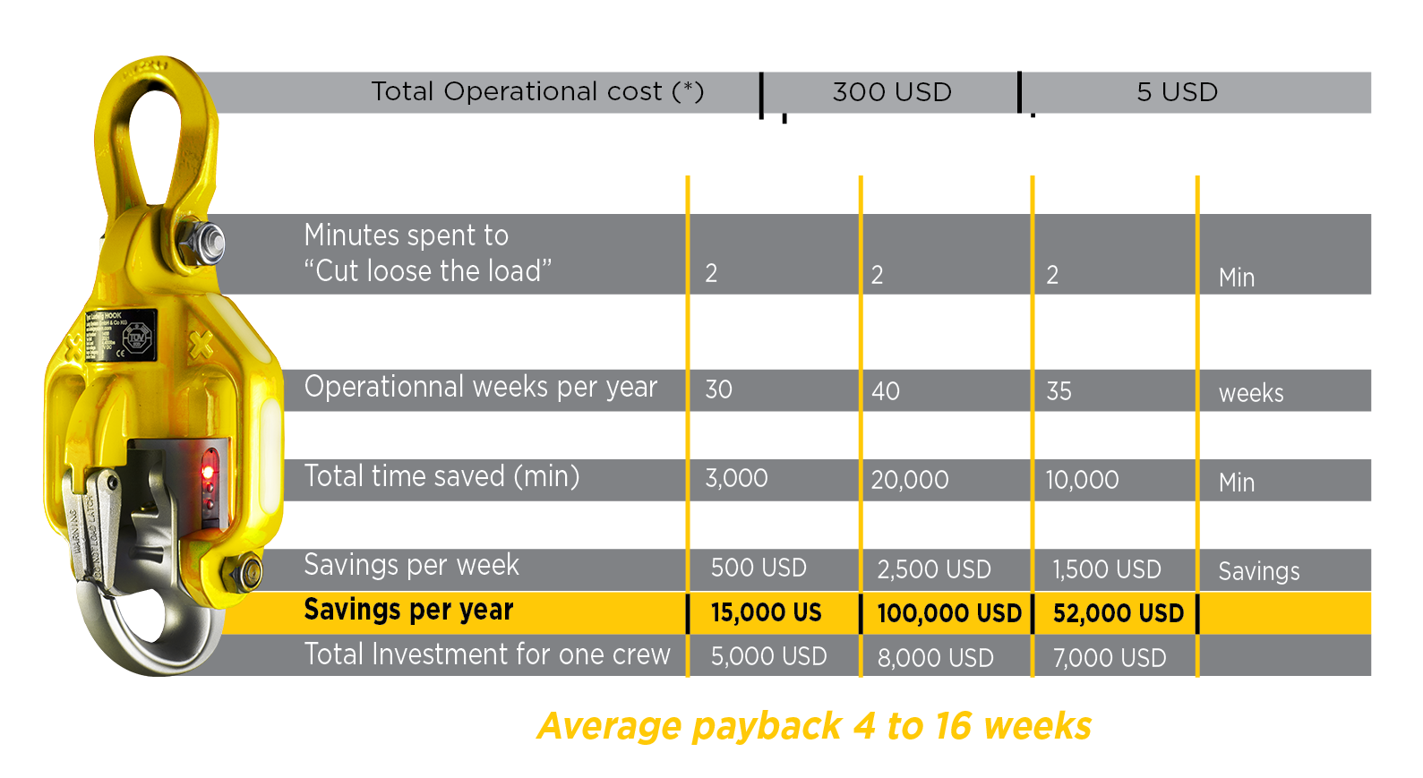 Payback period assumption is based on a kit of 2 quick-release LudwigHooks 4400 lbs.